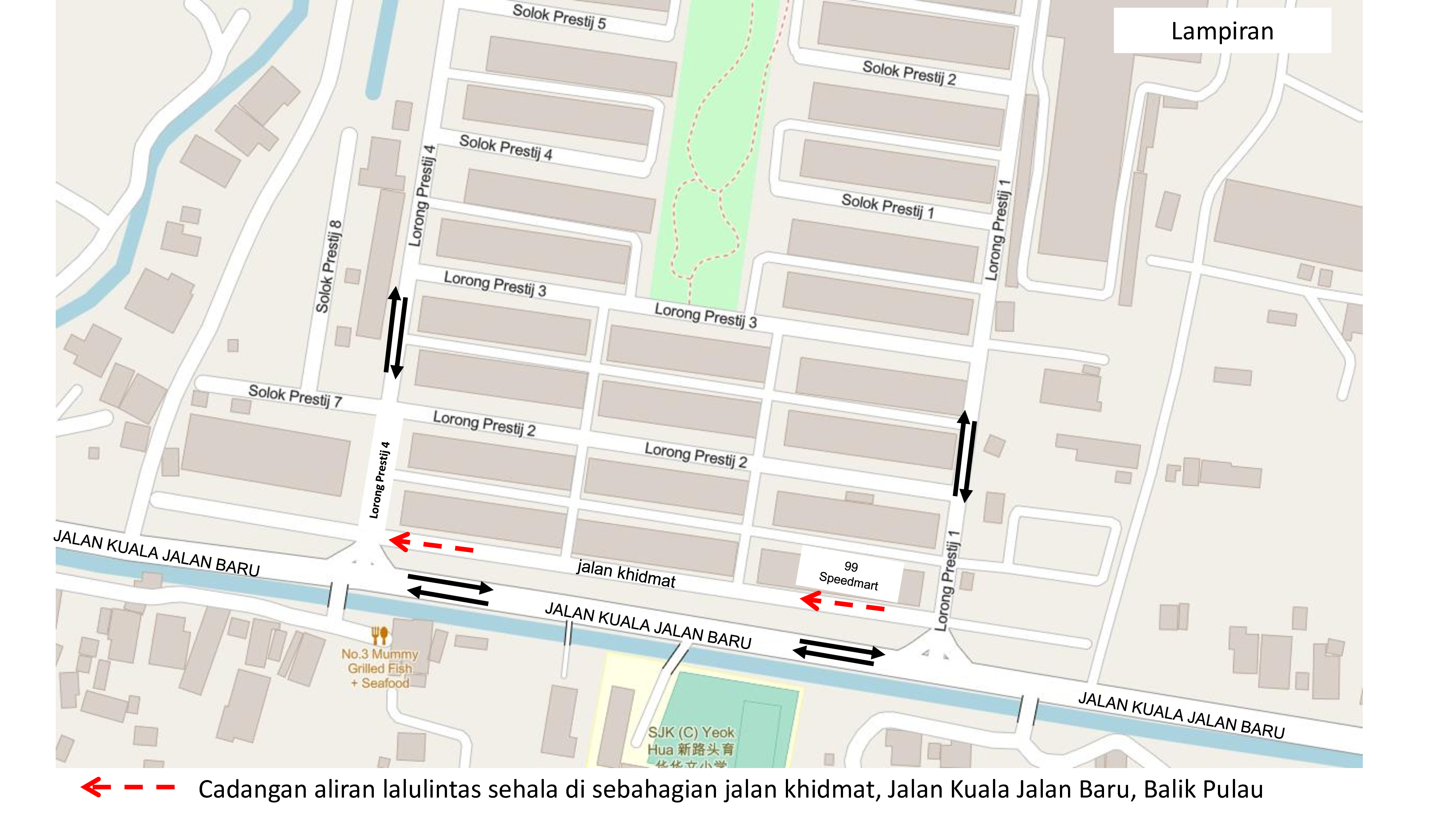 CADANGAN PENUKARAN ARAH ALIRAN LALULINTAS SEHALA DI SEBAHAGIAN JALAN KHIDMAT JALAN KUALA JALAN BARU, BALIK PULAU, PULAU PINANG