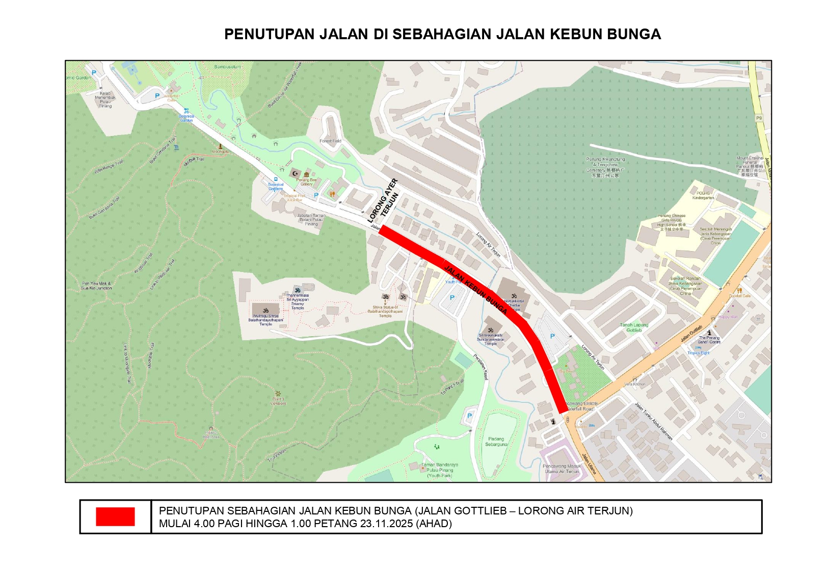 MAKLUMAN PENUTUPAN JALAN DI SEBAHAGIAN JALAN KEBUN BUNGA PADA 23 NOVEMBER 2025