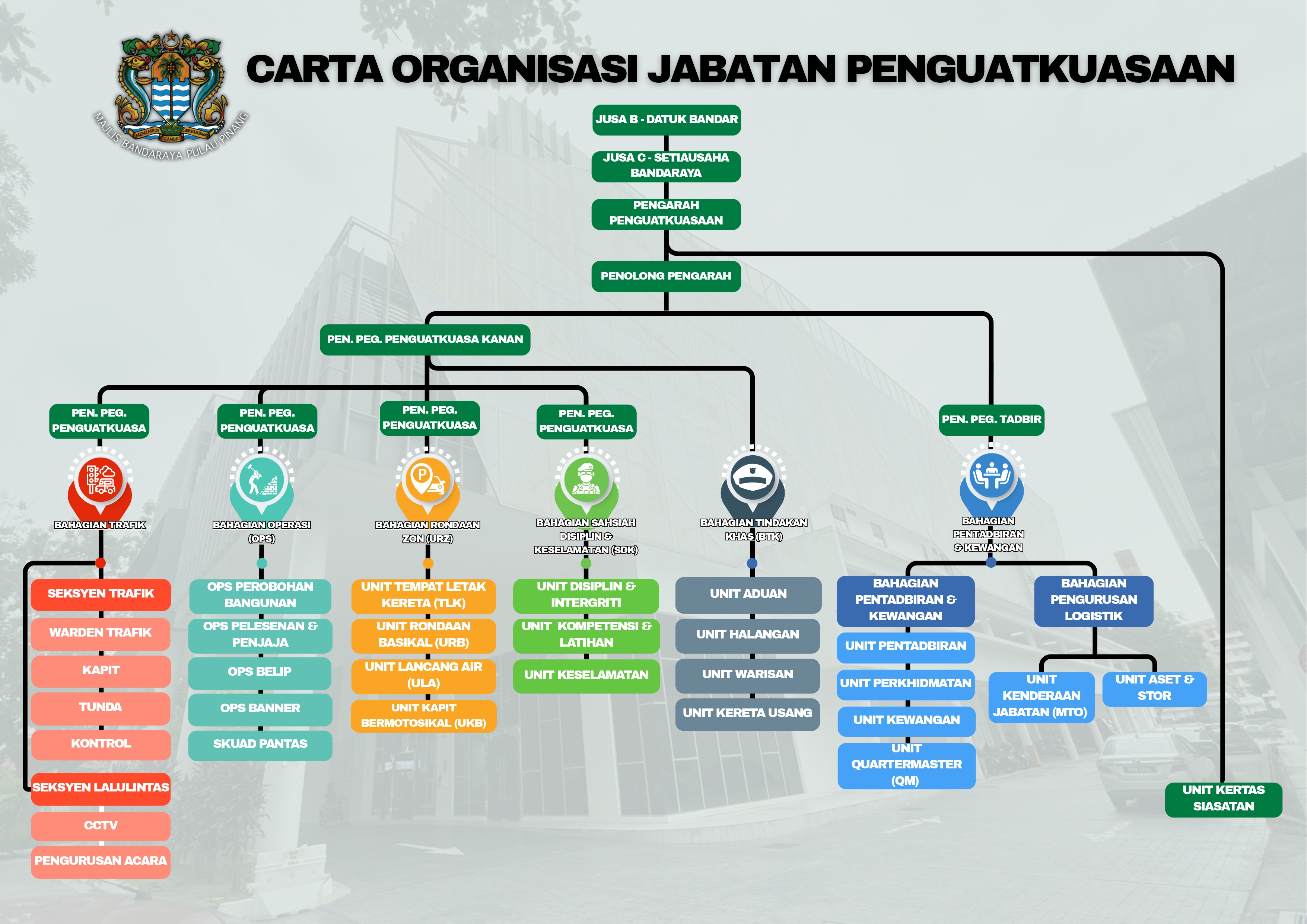 1 Menguatkuasakan tindakan undang-undang yang diperuntukan dan di guna pakai oleh Majlis Bandaraya Pulau Pinang.